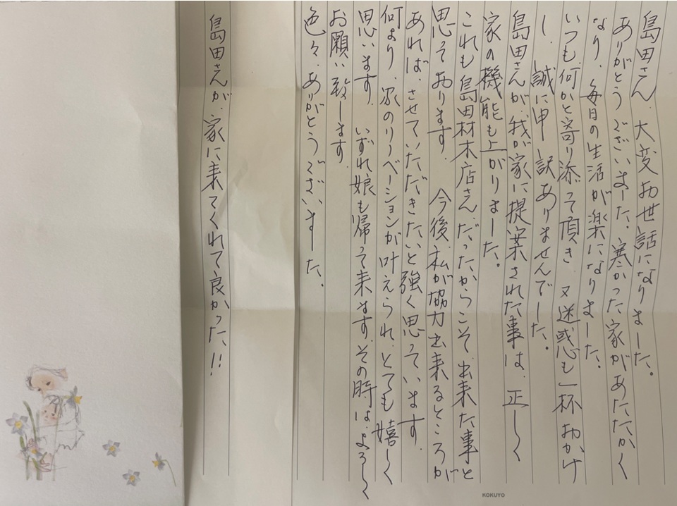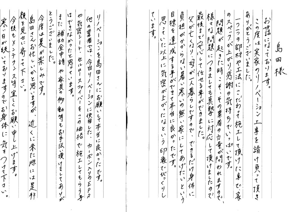 O邸 東海村リノベの心のこもった手紙 O邸 東海村